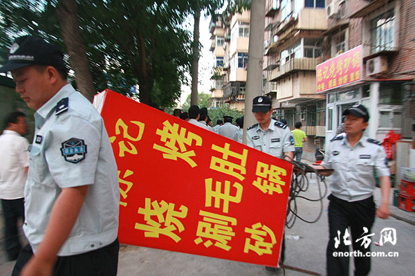 5月30日晚,记者跟随河东区综合执法局对万新村地区崂山道周边的马路餐桌进行整治。由于该地区人口稠密,马路餐桌的数量也不在少数,崂山道更是该地区马路餐桌集中的区域,被列入河东区10个马路餐桌重点整治区域之一。此次集中治理,河东区综合执法局派出10余部车辆、几十人的执法队伍,在走访和宣传教育先行的前提下,借助行政处罚来约束、规范有固定门脸的商户的经营行为,对那些屡教不改、屡禁不止、一意孤行的违法相对人依法实施处罚。