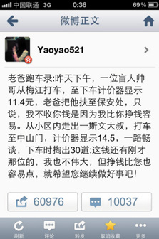 张雅森:因撇下自己年近8旬的父亲连夜送乘客生病的孩子就医而得到了网民的赞许。“这样的小事不值一提,都是分内的事,相信每一个有责任心的出租车司机都会这么做。”能够首先考虑乘客的需求,把自己的利益放在最后,这样的小事更能体现出一个人的无私。【详细】 |