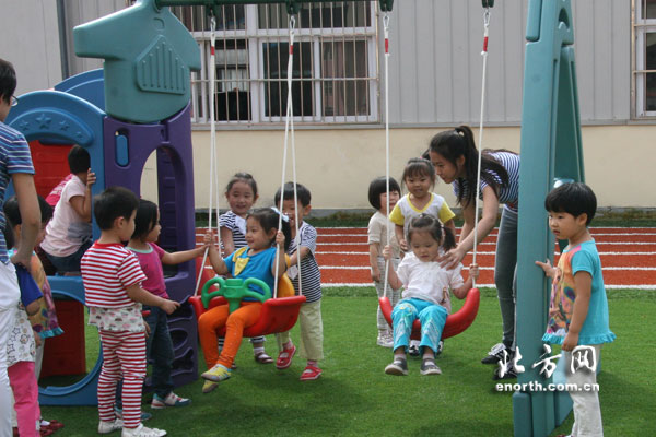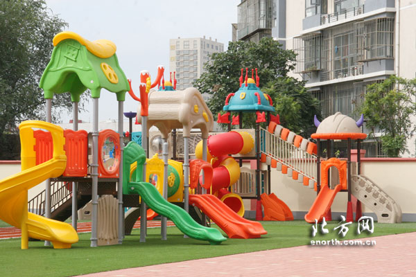 记者在采访时正值课外活动时间,孩子们有的在老师的带领下做着健身操,有的在滑梯上爬上爬下。房克霞表示,“园内新增添的大型活动器械有3套,可同时容纳全园251名学生同时活动。原先幼儿园的面积只有960平米,现在占地面积增加到了4000多平米,活动场地的扩大让孩子们有了伸展的空间,为他们的健康成长提供了良好的环境。”(记者晁丹)