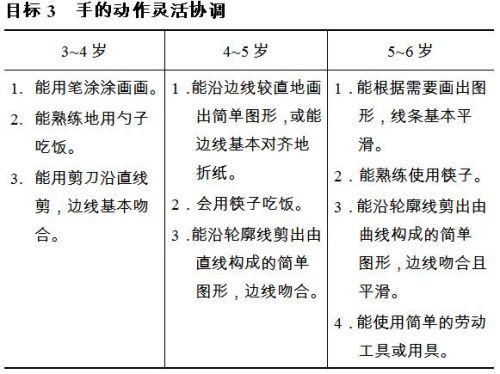 引导幼儿生活自理或参与家务劳动,发展其手的动作。如练习自己用筷子吃饭、扣扣子,帮助家人择菜叶、做面食等。