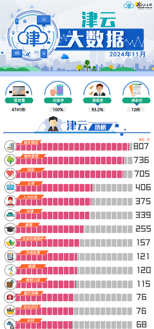 天津北方网讯:2024年11月份,《党群心连心》和《政民零距离》两个栏目共收到网民留言4741件,其中,咨询类留言1891件,投诉类留1641件,求助类留言637件,建议类留言560件,反馈类留言12件。