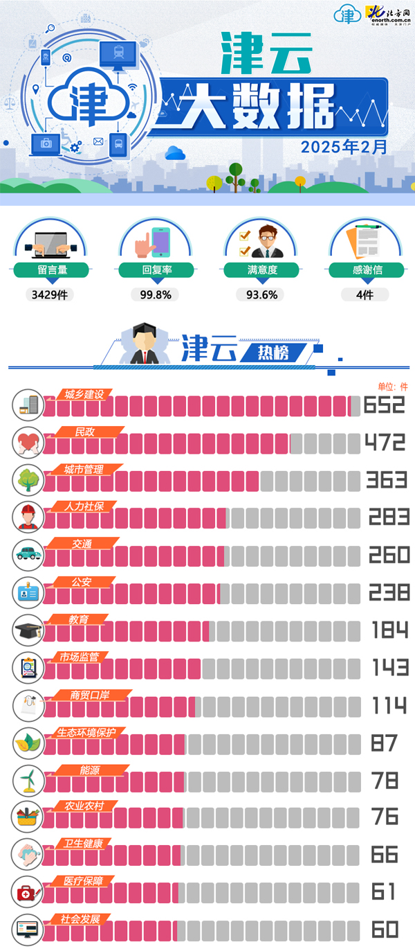 天津北方网讯:2025年2月份,《党群心连心》和《政民零距离》两个栏目共收到网民留言3429件,其中,投诉类留言1334件,咨询类留1275件,求助类留言441件,建议类留言375件,反馈类留言4件。