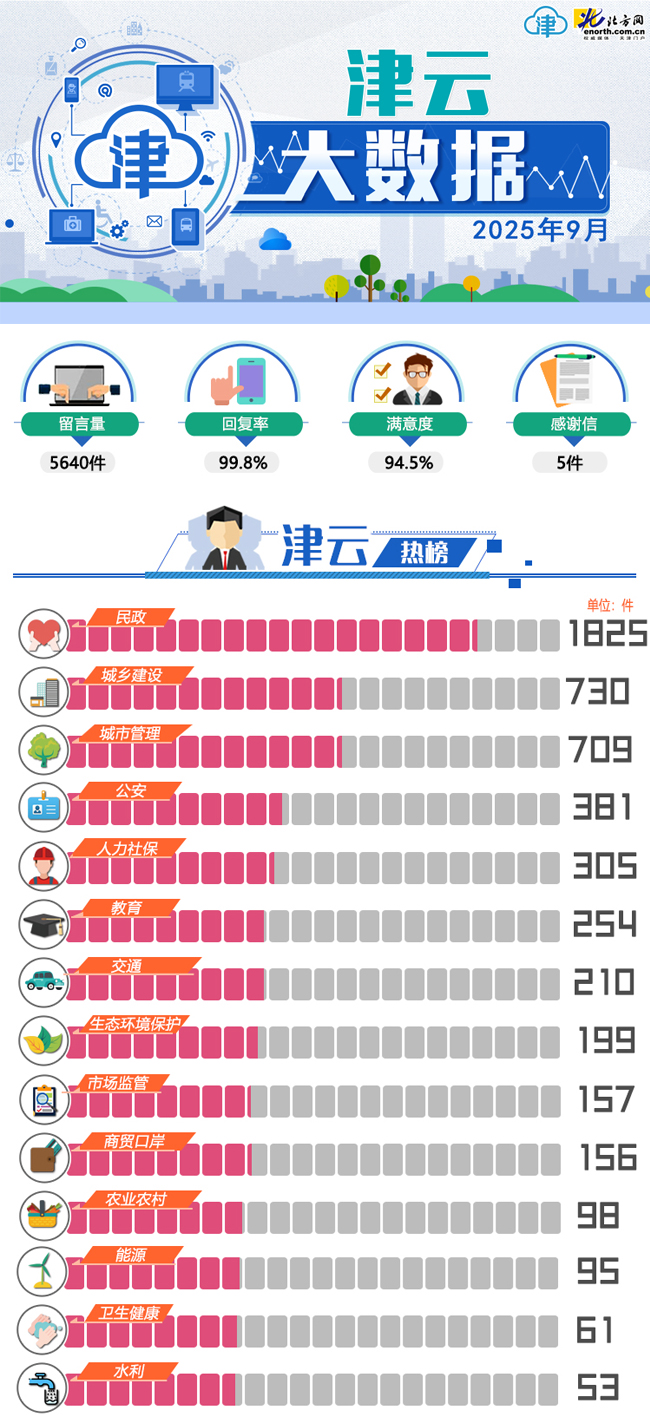 天津北方网讯:2025年9月份,《党群心连心》和《政民零距离》两个栏目共收到网民留言5640件,其中,投诉类留言3024件,咨询类留1317件,建议类留言691件,求助类留言603件,反馈类留言5件。