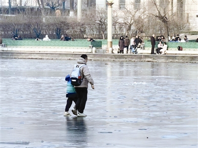 带着问题,记者随机走访,发现冰面上的“日常”景象令人担忧。1月24日上午,东丽区德信道旁河道、外环东路与志成路辅路交会处的新开河,冰层薄脆且边缘可见活水,仍有人垂钓;当日下午,和平区多伦道与张自忠路交口的海河,情侣、老人、孩童和冰上活动爱好者纷纷横穿冰面。即便岸边有警示标志、民警沿岸巡逻,多数人仍视而不见,令人忧心。