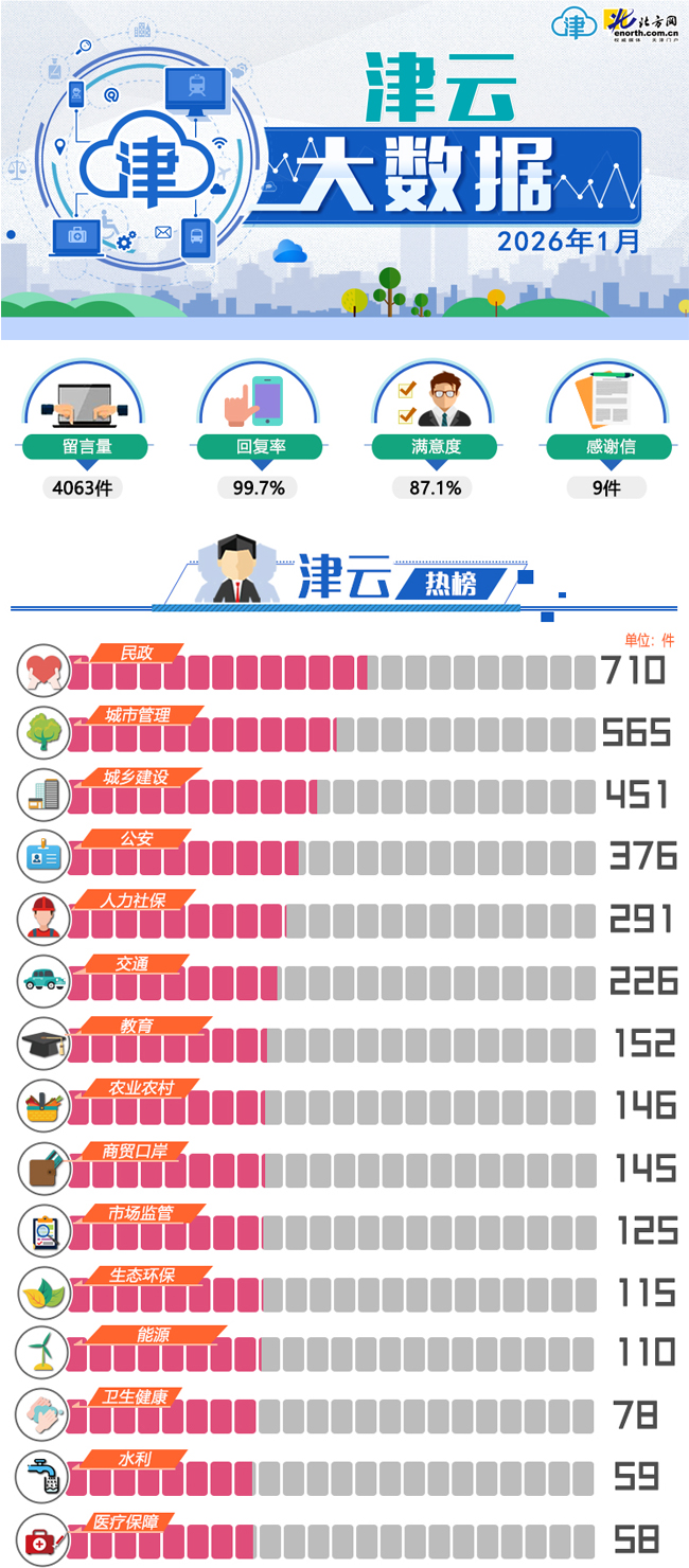 天津北方网讯:2026年1月份,《党群心连心》和《政民零距离》两个栏目共收到网民留言4063件,其中,投诉类留言1890件,咨询类留1100件,建议类留言539件,求助类留言525件,反馈类留言9件。